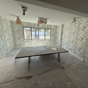 Selected work across wallpaper, trim, paint, and carpentry.