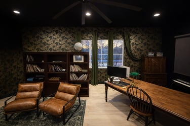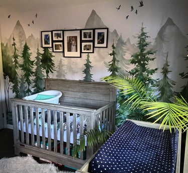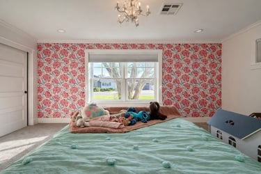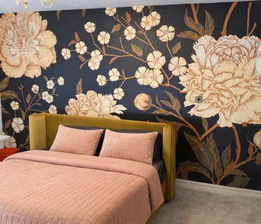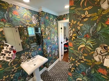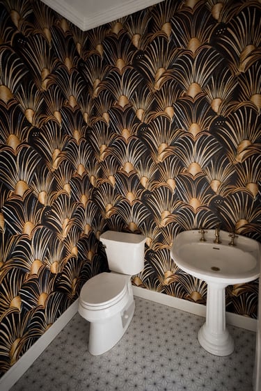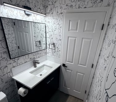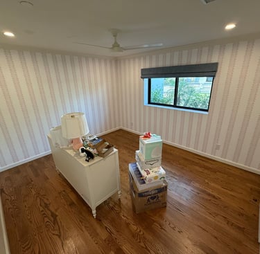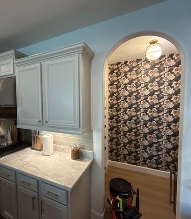 A collection of work across wallpaper, trim, paint, and carpentry.